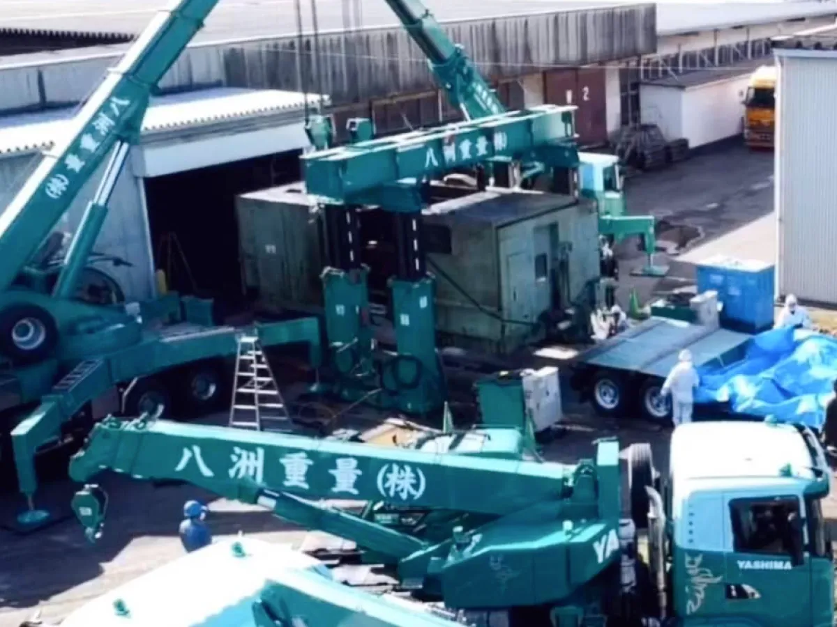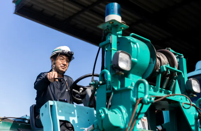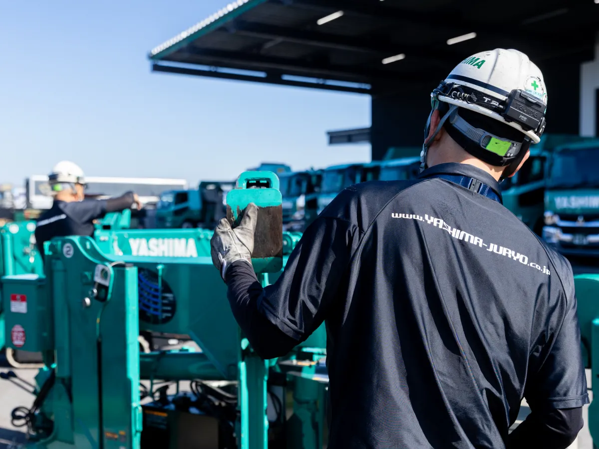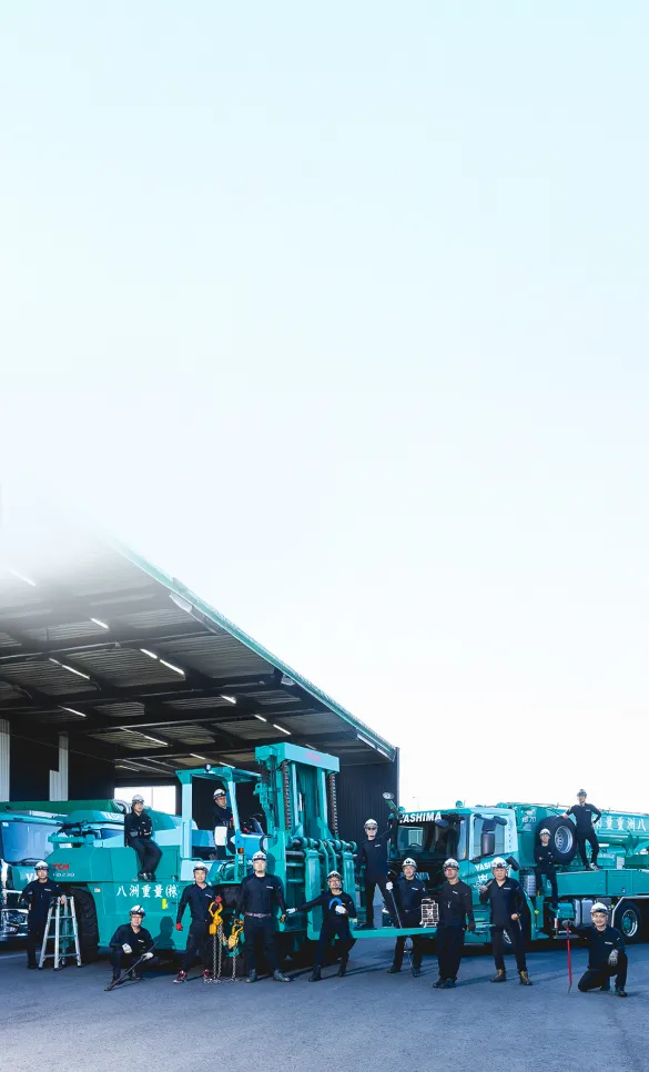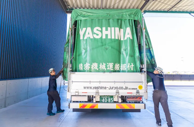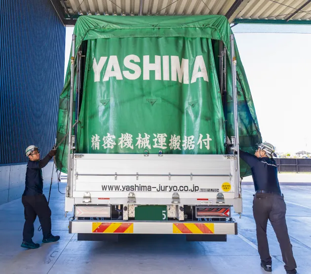 特殊な機械を大型トラックに積み込み、お客様先の現場で設置までを行うのが八洲の仕事。