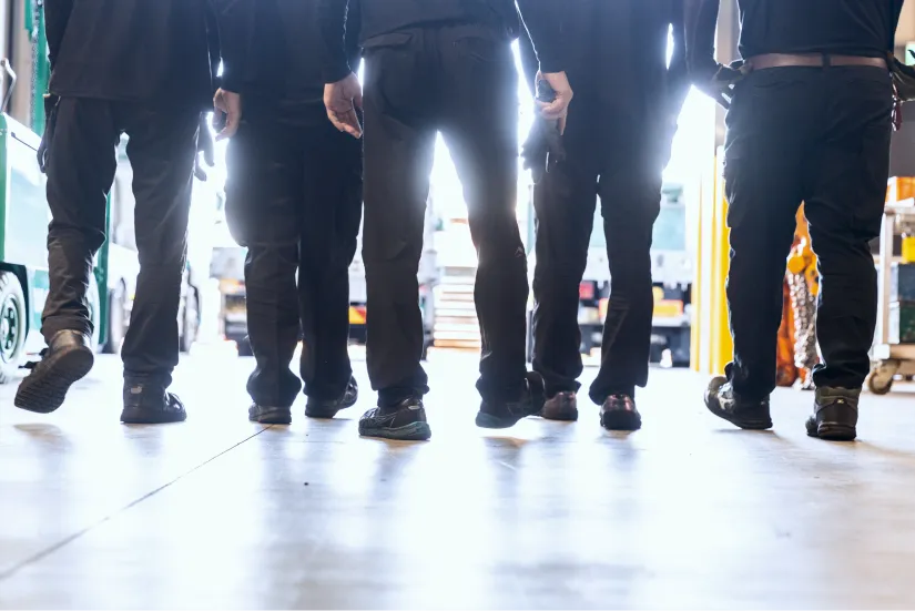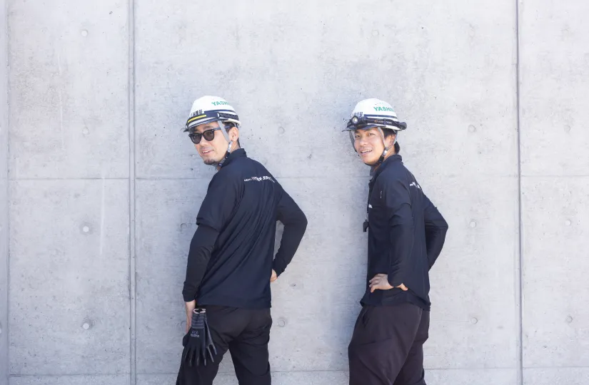 制服、空調服、ヘルメットは会社が用意。それとは別に、衣類の費用も初年度は7万円支給します。